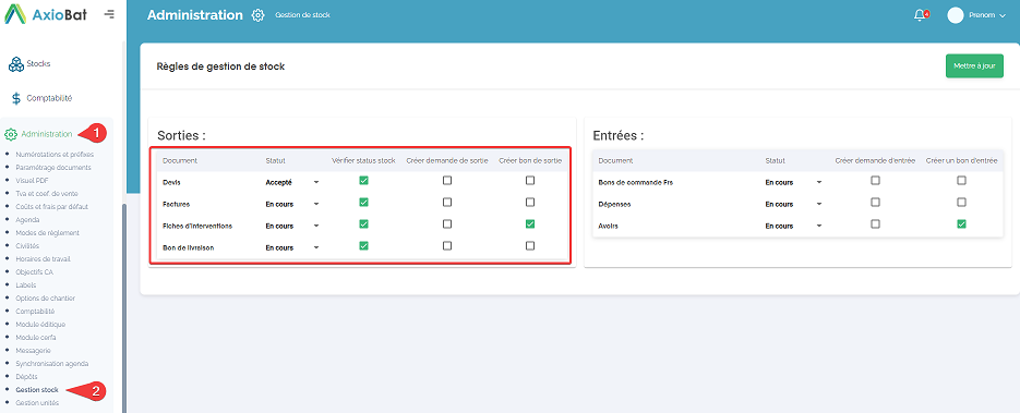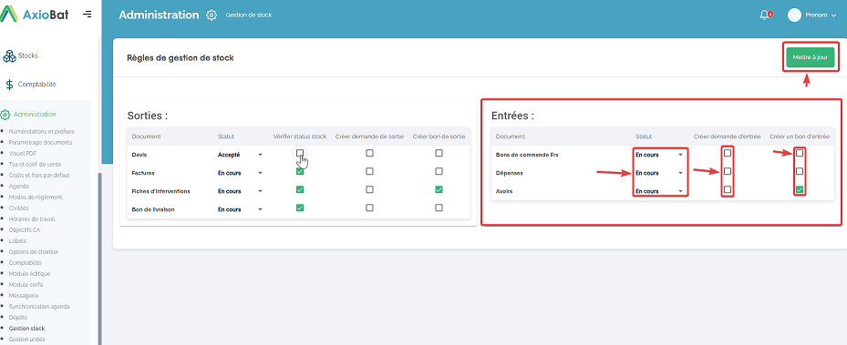 3. Configurer les actions automatiques Impactant les Entrées de Stock :