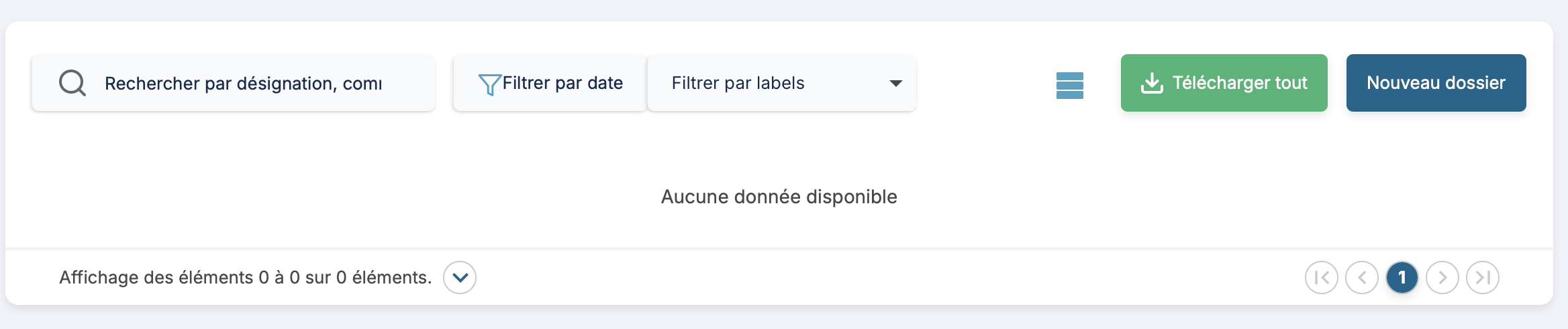 Cliquez sur le bouton bleu en haut à droite pour créer un nouveau dossier :