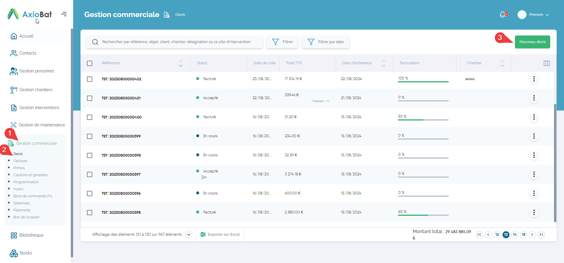 Établir un devis est une étape importante car les devis fournissent une estimation détaillée des coûts associés à un produit, un service ou un projet spécifique. la création d'un devis sur Axiobat peut se faire facilement en quelques étapes: