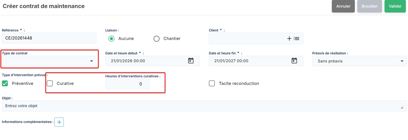 Compléter les informations complémentaires propres à la nouvelle gestion de maintenance