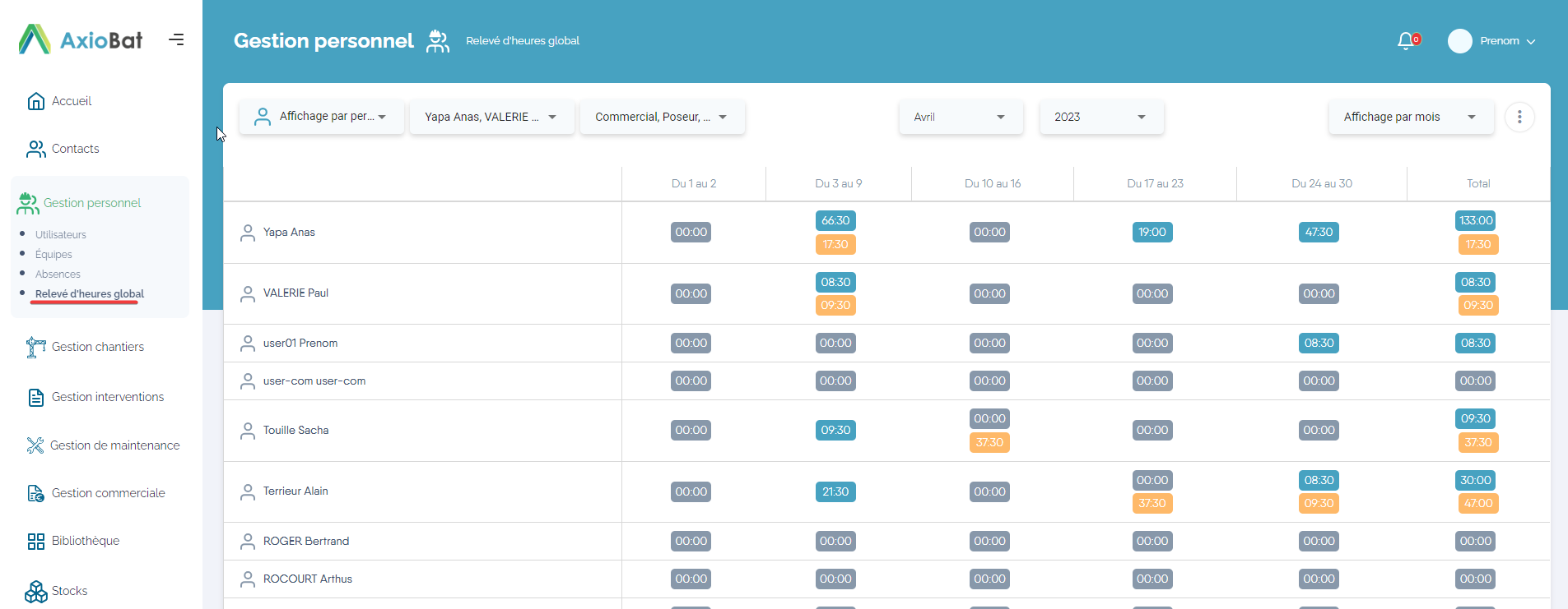 le relevé d'heures global représente l'ensemble des heures travaillés, absences, taches réalisés ou heures supplémentaires,