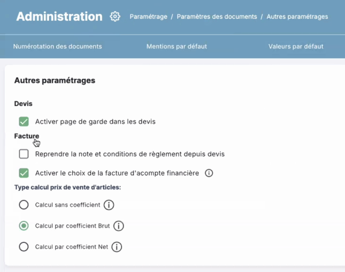 Ce paramétrage est aussi accessible depuis : Module Administration > Paramétrage > Paramétrage des documents > Onglet "Autres paramétrages".