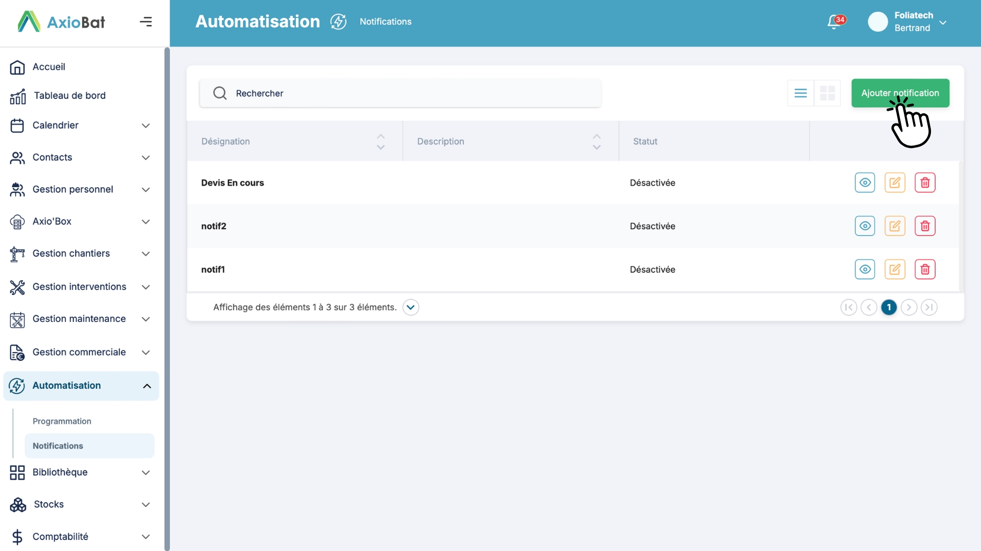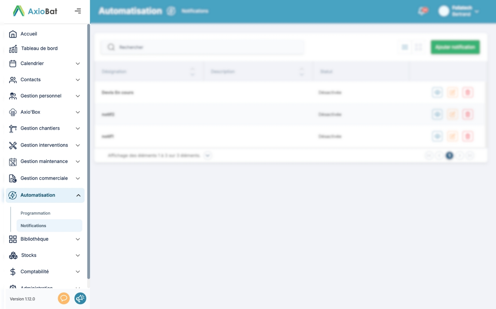 - Statut : Activez ou désactivez la notification selon vos besoins.