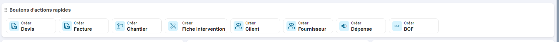 Placé en premier, des "Boutons d'actions rapides", qui ont pour objet de permettre une création rapide de différents types de documents.