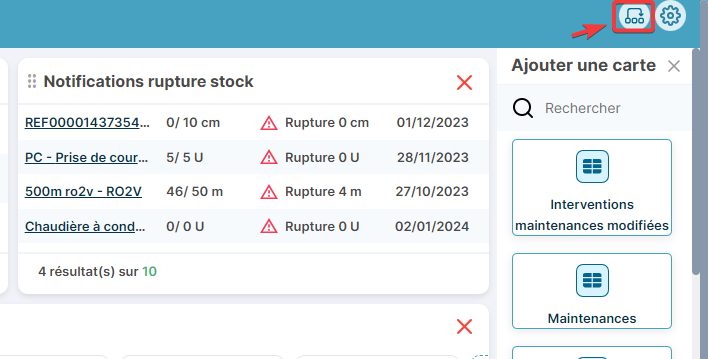 Pour cela, il vous suffit de cliquer sur le bouton situé à droite, qui permet de configurer les cartes à afficher, vous pouvez même chercher sur la barre de recherche le type de carte souhaité et à sélectionner (voir image jointe).