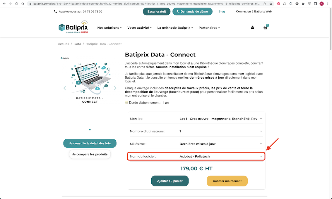 Pour pouvoir intégrer Batiprix avec Axiobat il faut disposer d'une licence "DATA - Connect" que vous pouvez acquérir en cliquant ici.