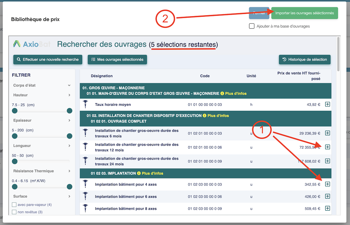 Notez que les ouvrages importés depuis Batiprix seront toujours intégrés dans Axiobat en étant des ouvrages avec des prix forfaitaires.