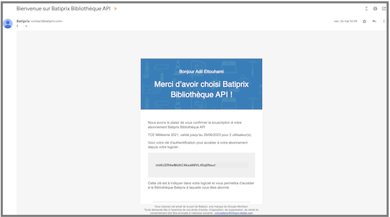Attention ! Si vous disposez déjà d'une clé Batiprix sur un autre logiciel, celle ci ne fonctionnera pas directement avec Axiobat. Il faudra contacter le support Batiprix pour qu'il vous génère une nouvelle clé compatible avec Axiobat.