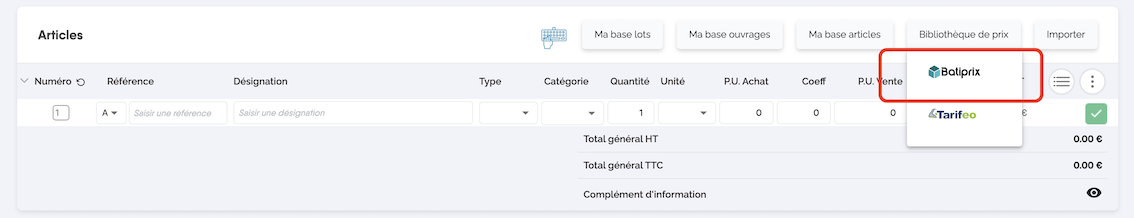 Utiliser Batiprix dans les devis :