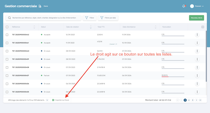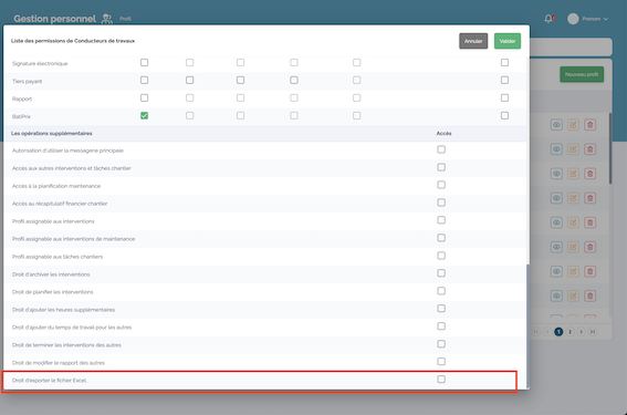 Depuis le menu "Utilisateurs" , choisissez le profil qui vous intéresse et donnez lui ou non la possibilité d'exporter sur excel.