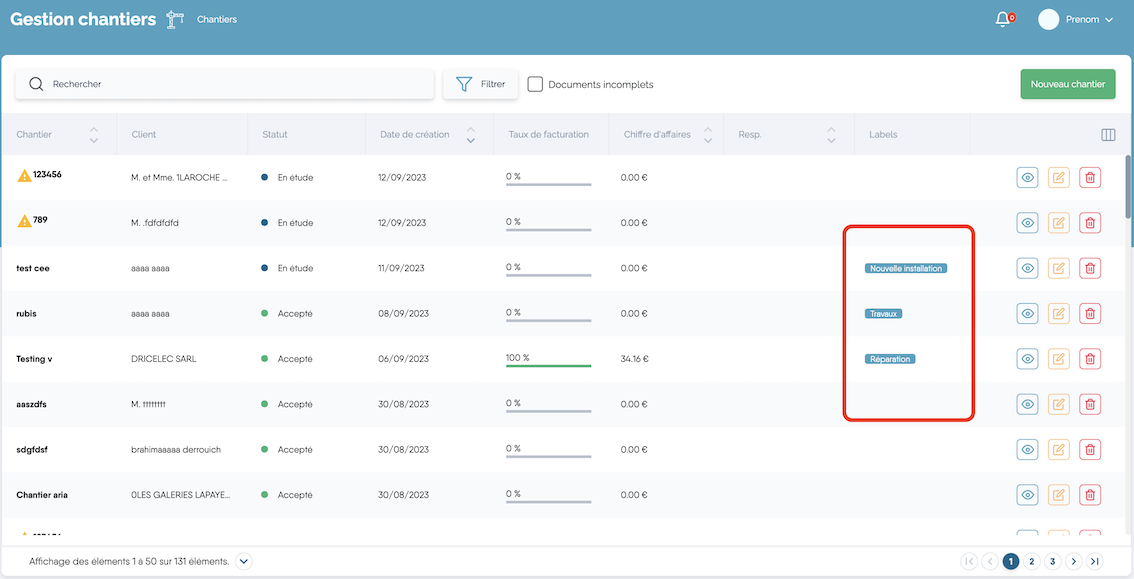 Quand vous modifiez un Labels dans le paramétrage, vous impactez tous les éléments qui ont déjà se Labels appliqué. C'est pratique quand vous décidez de changer l'intitulé d'un Label ou ne plus l'utiliser.